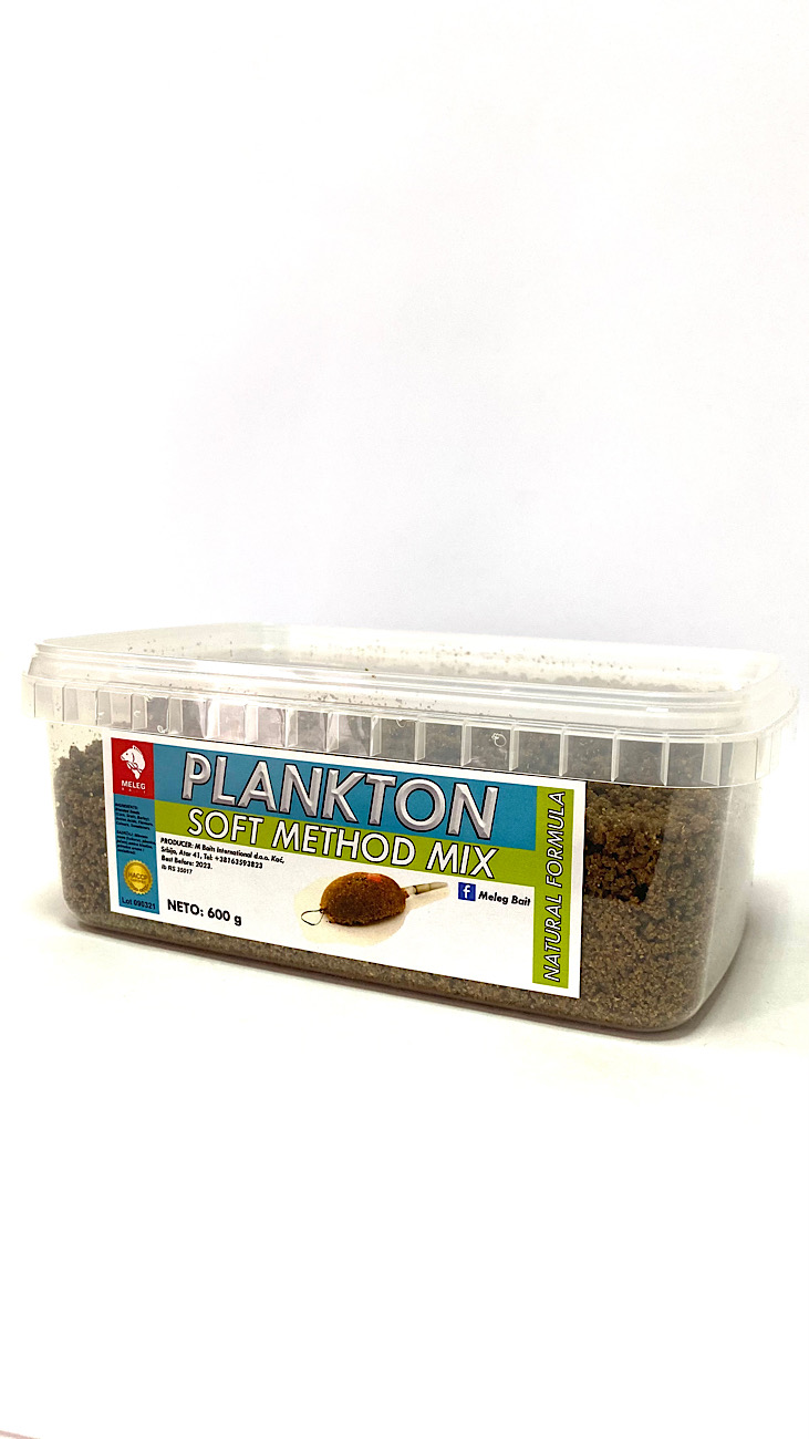 Soft Method Mix nastaje nakon mnogo zahteva ljudi koji su koristili naše Soft pelete, da napravimo nešto posebno za njih. Zadatak je bio da method mix bude praškasta hrana, jednako atraktivna i vlažna kao Soft Pellet. Napravili smo hranu koja zaista brzo radi i pri tom ima čestice koje se podižu i koje se oslobađaju u roku od 15 sekundi dok hrana počinje da se topi. Plankton je naš novi originalni jedinstveni ukus i aroma koju smo dobili poboljšanjem vise vrsta koncentrovanih aroma. Riba reaguje instiktivno na jak signal planktona u soft method mixu. S obzirom da je blaga aroma na mesnoj bazi atraktivan je u zimskom i u letnjem periodu.