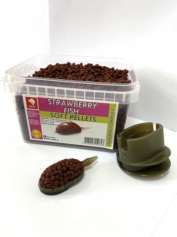 Soft Pellet je već pripremljen proizvod za ribolov i spreman za korišćenje. Sadrži sve potrebne amino kiseline i izazivače gladi i u njega nije potrebno dodavati vodu. Koristi se vrlo lako i ne prlja pribor. Soft pellet je napravljen i posebno dizajniran za Method Feeder i Match ribolov, ali se izuzetno dobro pokazao i u Carp ribolovu gde se Soft Pellet može dodavati u PVA mrežicu. Svi peleti iz asortimana Meleg Bait su nisko proteinski u lako svarljivi. Mogu se jednako koristiti tokom sva četiri godišnja doba. Strawberry Fish je kombinacija aroma sa mešavinom lako svarljivih vrsta ribljeg brašna, uz izazivač gladi Pro Amino Digest koji poboljšava i ubrzava varenje. Ovaj proizvod se jako dobro pokazao u teškim uslovima pecanja, gde je veliko opterećenje komercijalnih jezera i gde riba ima dosta prirodne hrane.